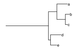 In this area, the UniFrac distance is widely used to measure β-diversity between bacterial communities. We’ll reproduce an example from the UniFrac paper by Lozupone and Knight (PMID 16332807), which describes the unweighted UniFrac distance. The tree from Figure 1 is available as lozupone_tree.