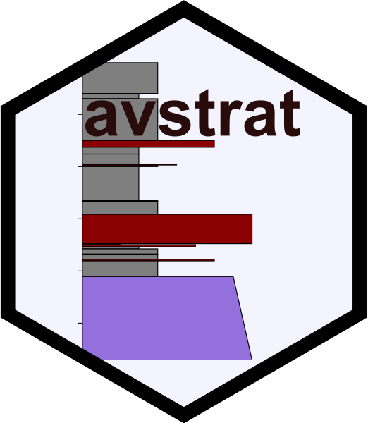 This package provides tools for data processing and generating stratigraphic sections for volcanic deposits and tephrastratigraphy. Package was developed for studies on Alaska volcanoes (“av”) where stratigraphic (“strat”) figures are needed for interpreting eruptive histories, but the methods are applicable to any sediment stratigraphy project. The primary outputs are ggplot figures of stratigraphic sections–ggstrat(), ggstrat_column(), ggstrat_sampleID()-but the data processing logic add_depths() and add_layer_widths() enable motivated users to create custom visualizations. Various load_data functions facilitate ingesting from stratigraphic layer data templates.